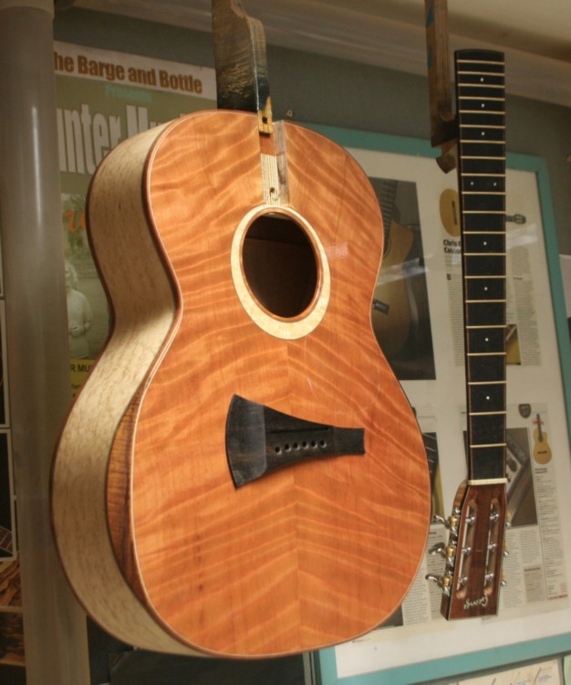 I found no problems working the wood (there are many dire warnings floating about the internet about it being brittle and prone to splitting). I did take great care though, when routing for the bindings but probably no more than usual. The back and sides were made of spalted maple.