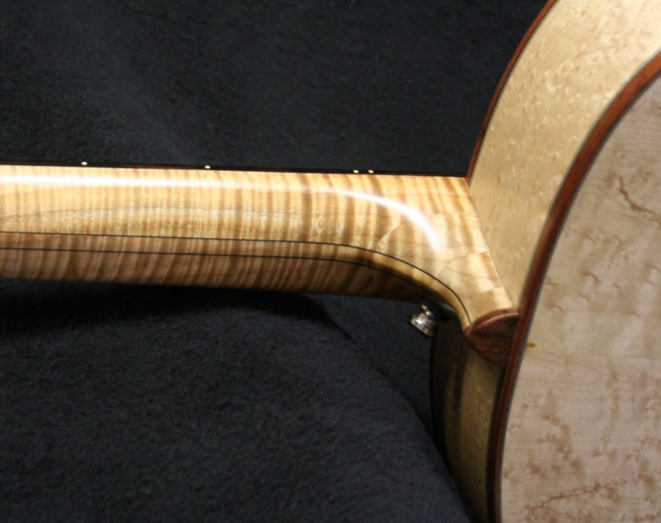 I had an old neck blank already made up, it was a three piece of flamed maple that I thought would go well with the birdseye back and sides.