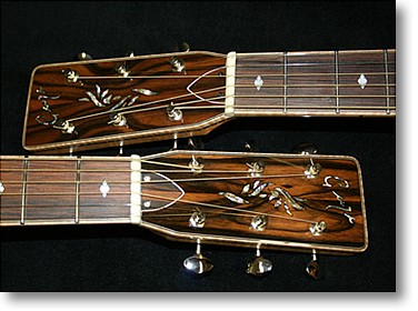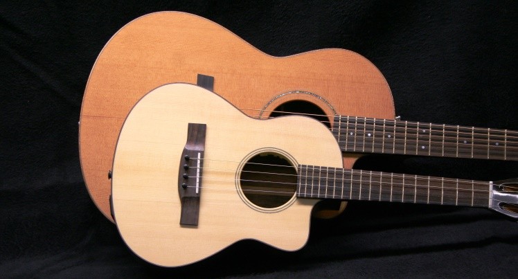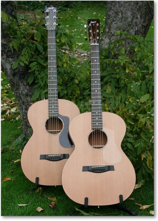 Both guitars were finished in nitro cellulose but for the first time ever, the fronts as well as the backs of necks were satin (I don't really like satin finished guitars) With the cedar tops, I had to eat my words as it gave both guitars a "Lowden" look (sorry George I did say "look" not "sound" or "feel". I have enormous respect for those guitars, one of the best ever acoustics I have played was a Lowden).