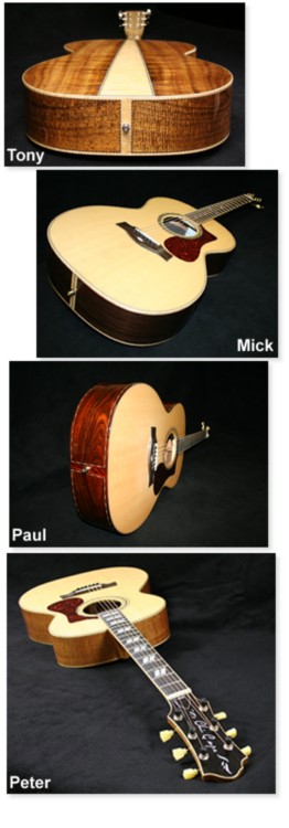 All quite punchy, can be strummed or picked and nicely balanced. The two rosewood ones (Mick's and Paul's) have perhaps a little more middle. But all will change with playing and time. Do I have a favourite?