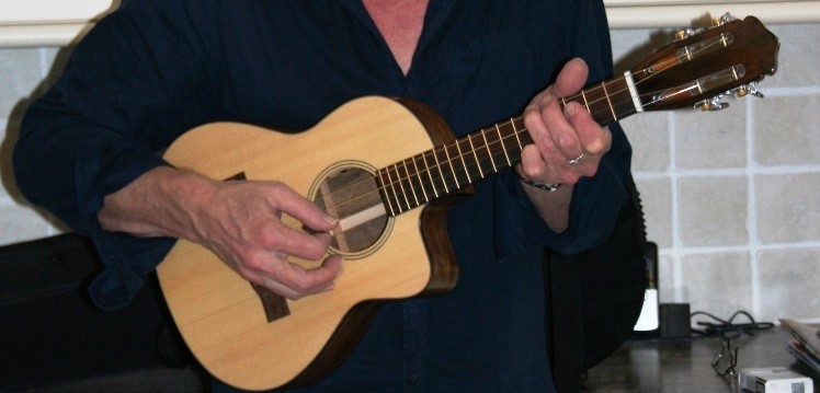 As this instrument was for for stage use, it was fitted with an 'all singing and dancing' L R Baggs Anthem system (under saddle mic and piezo) which does seem a little a odds with the original humble intentions of a true Cavaquinho. All went well and the finished instrument was strung up. It was then that I realised just how much tension was required in the strings and a secretly said 'thank you' for my pinned bridge. A few broken strings later, it was decided to contact a string maker for advice and a few custom sets were put together.