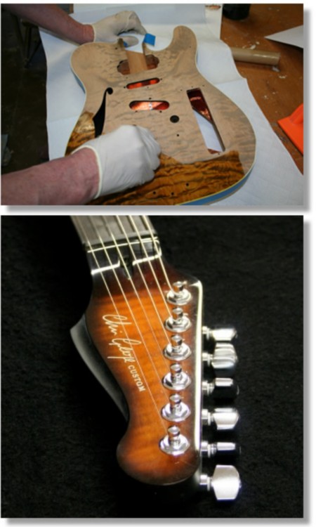 On the hardware side I must mention the nice guys at Sperzel machines. They made up a custom set with the key barrels in differing lengths, so that when fitted they would give a straight string pull on a typical 'Gibby' headstock, gold plated of course.