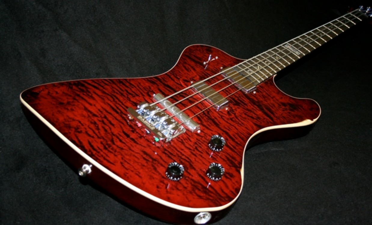The range of tones is obviously wide considering this is not an active bass. A set of flatwound strings add a lot of good old fashioned 'fatness' and no squeaky finger noise. Yes it is still a little top heavy but with this design it was always going to be, but it plays wonderfully and sounds superb and yes, it looks cool.