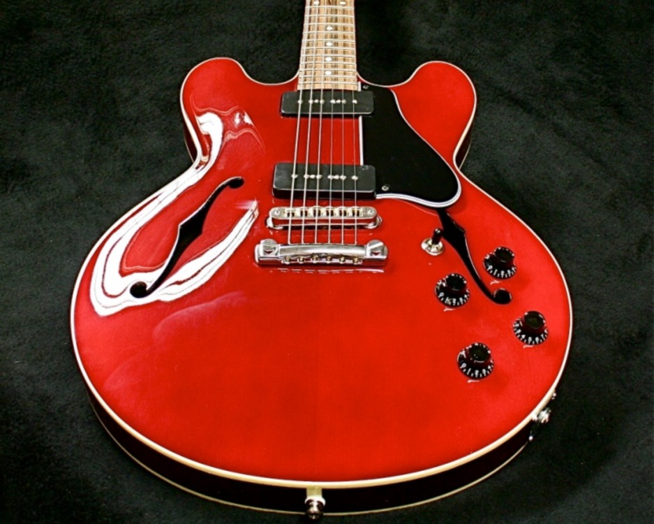 Single cut mahogany hollowbody with single bound carved spruce top