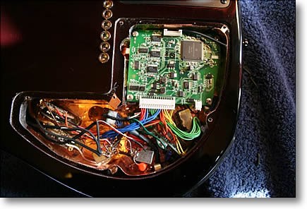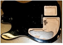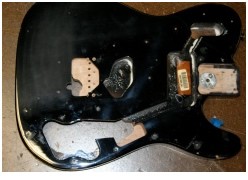 Battery access for the piezo preamp was housed on the rear control cavity plate. As usual the inside control area was heavily copper foil screened.