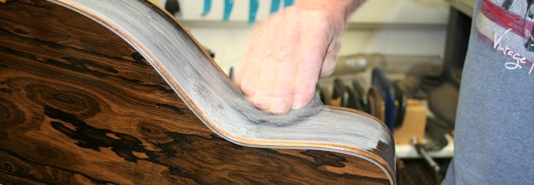 The finish was nitro cellulose with the cedar top and back of neck in satin, whilst the back and sides were hand rubbed gloss.