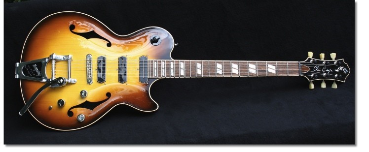Hardware had to include a Bigsby vibrato and Gotoh locking, height adjustable tuners together with a Schaller roller bridge. For the pickups Ian chose two TV Jones Classic pickups and a Lollar '52T bridge pickup.