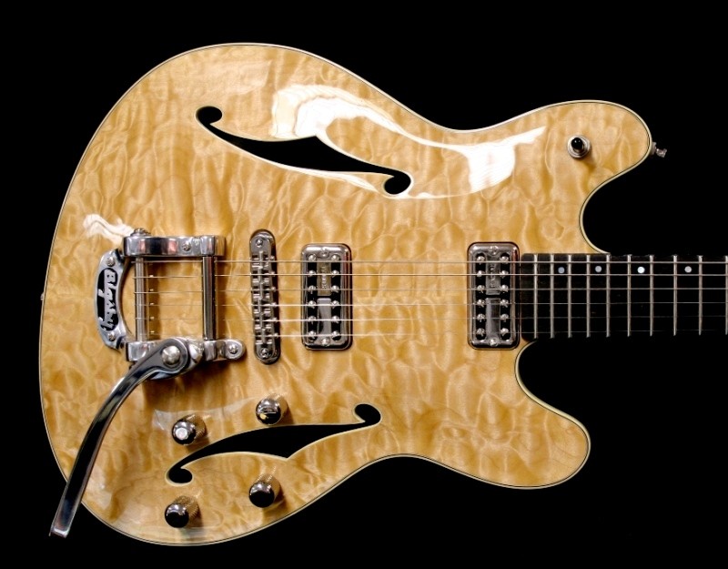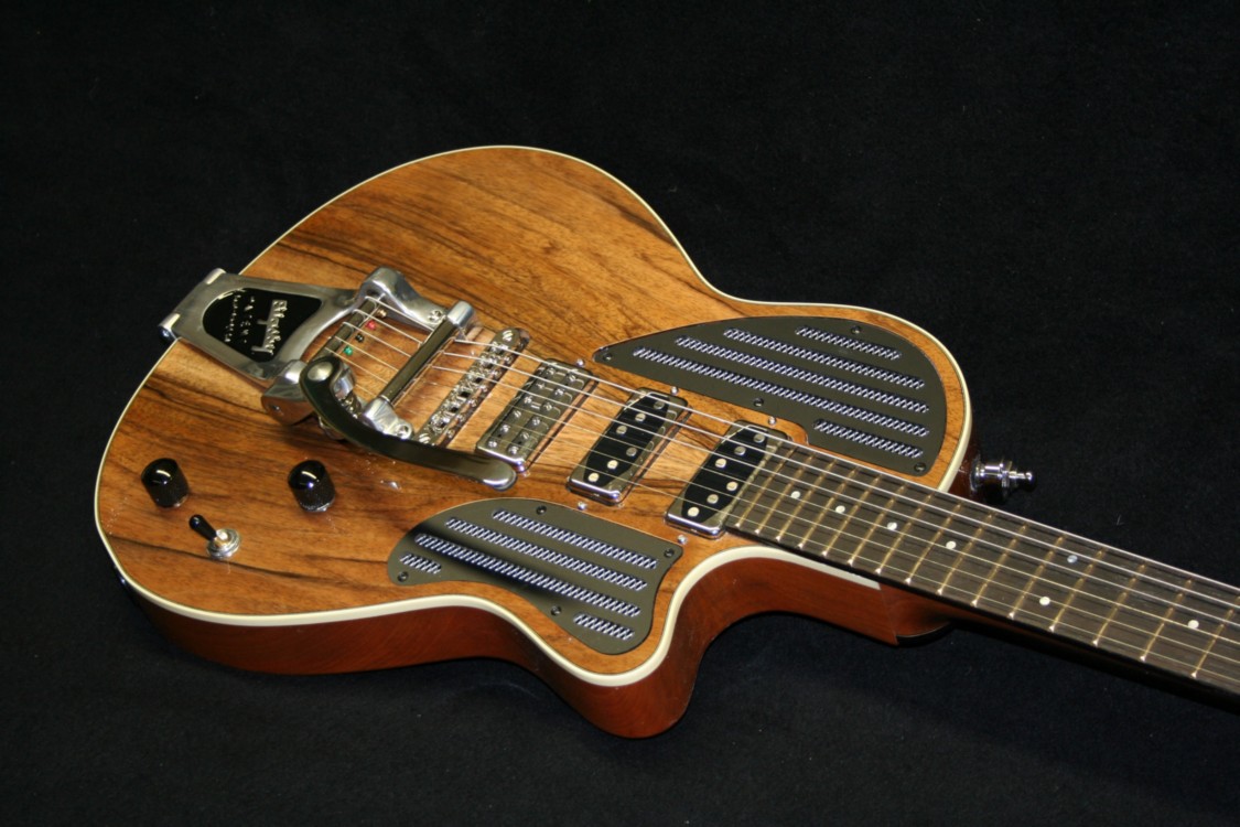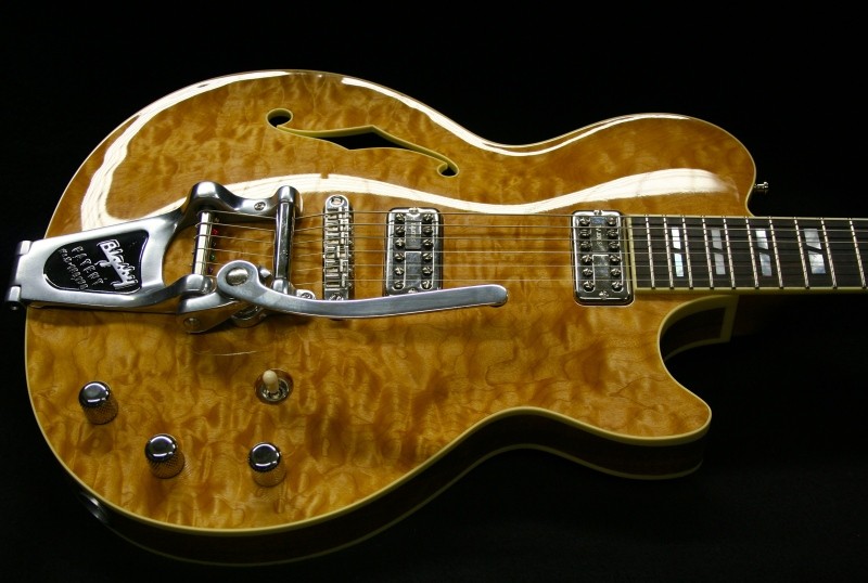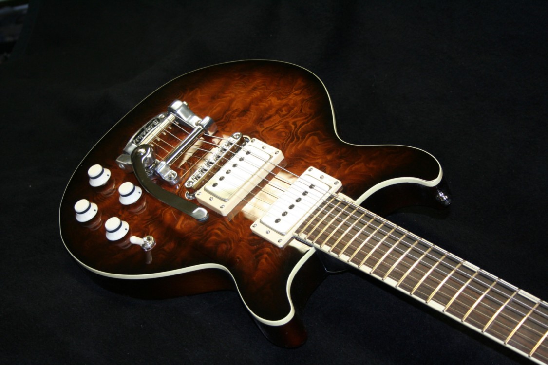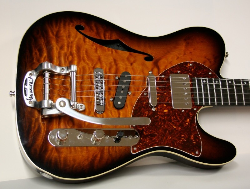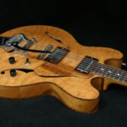 Perhaps a traditional shape but with a modern twist such as the set neck contoured body? Maybe a "T-style" or a single cut or a completely original design with a retro vibe.