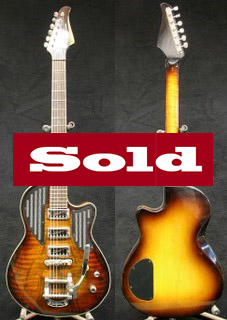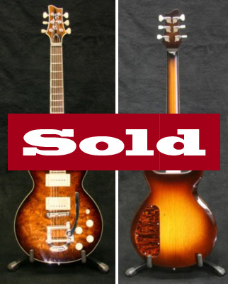 Aged single cut, set neck triple pickup electric with Bigsby B5 vibrato |